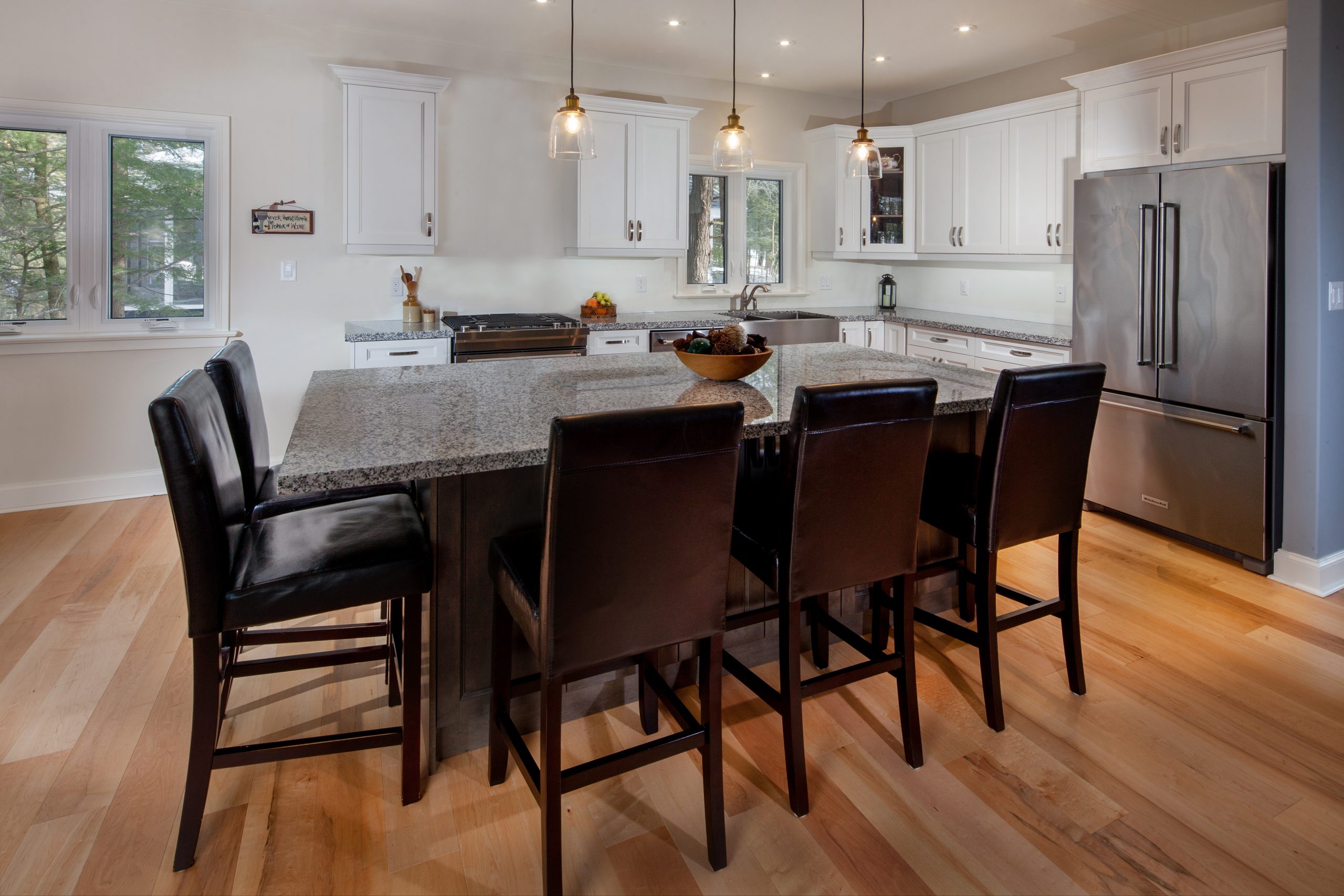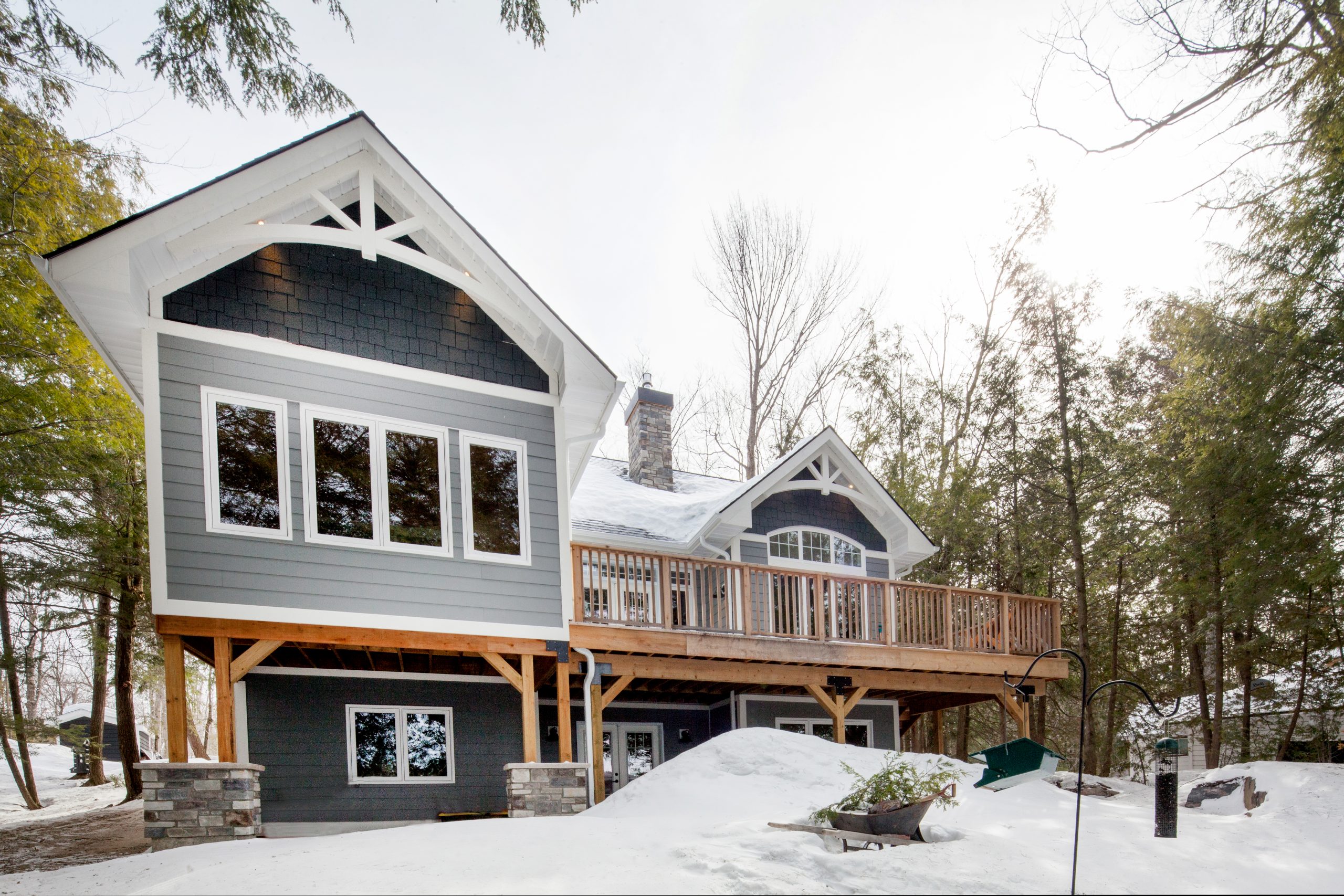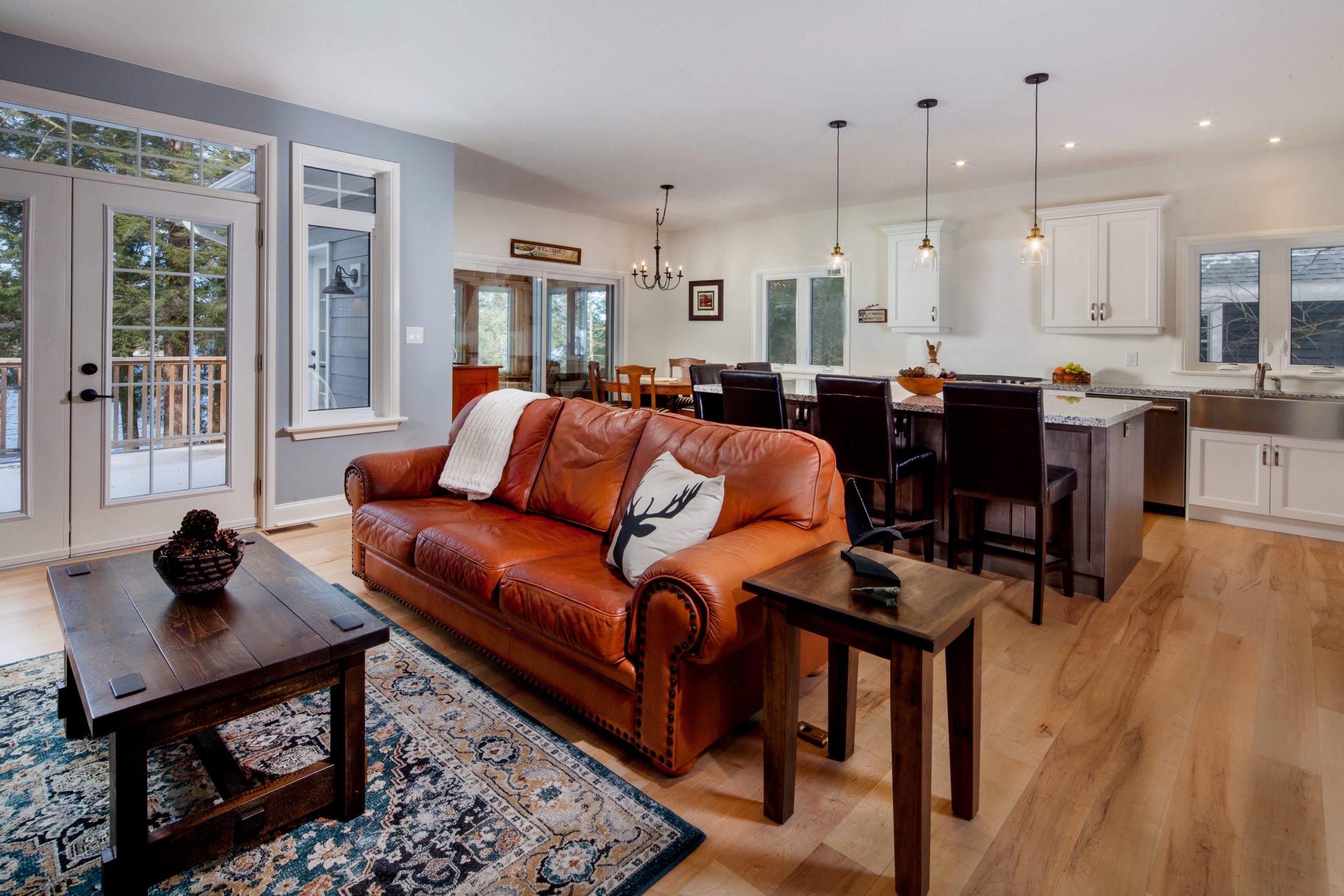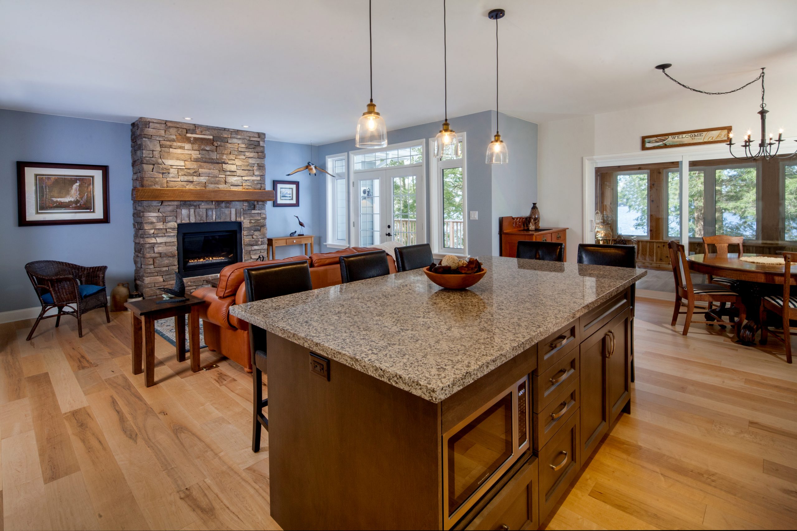 The homeowners envisioned a bright and inviting lakehouse that would support year-round living and comfortably accommodate guests. They sought a balance of cozy and open-concept design, integrating scenic views, durable materials, and warm, timeless finishes throughout.