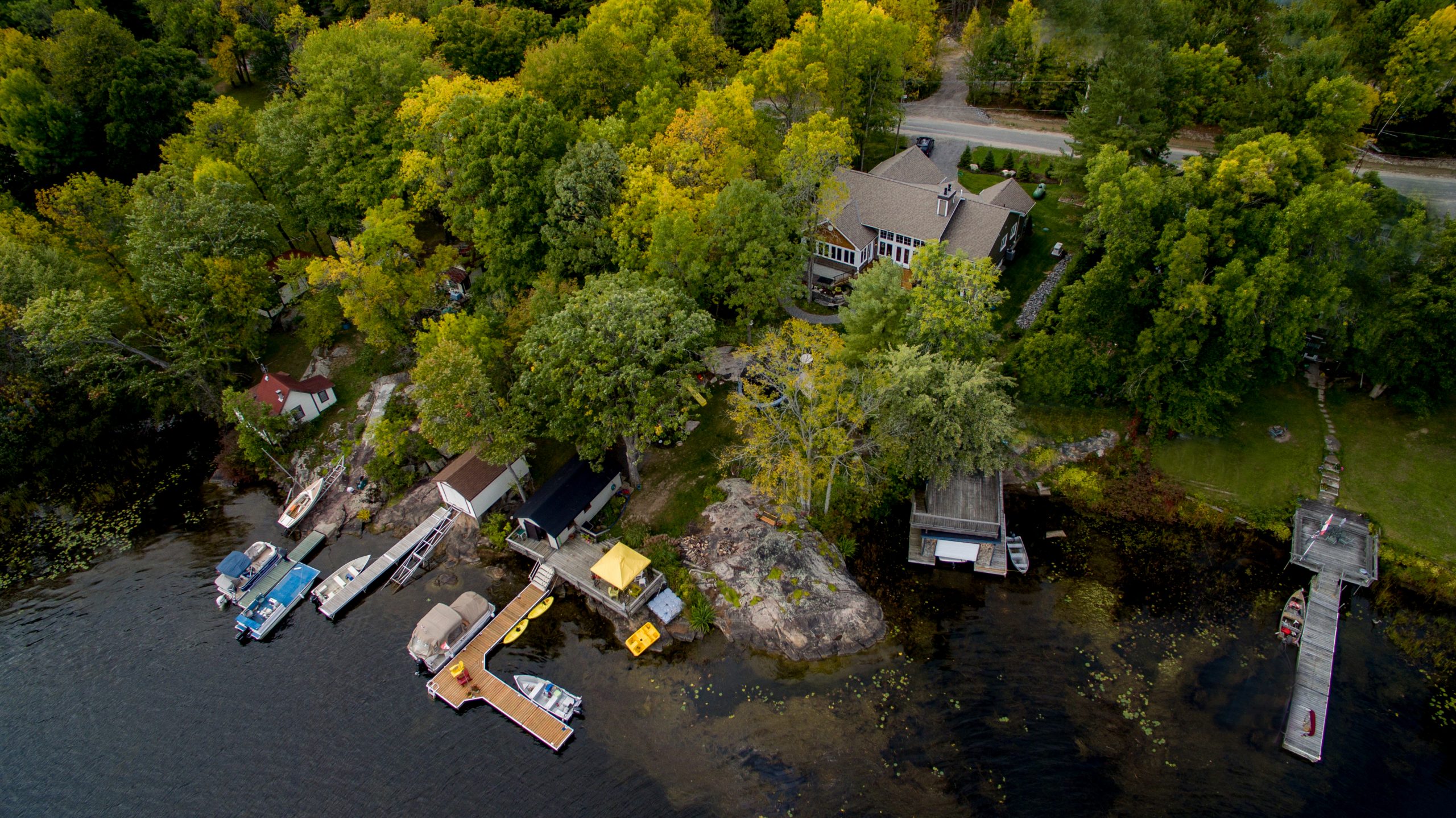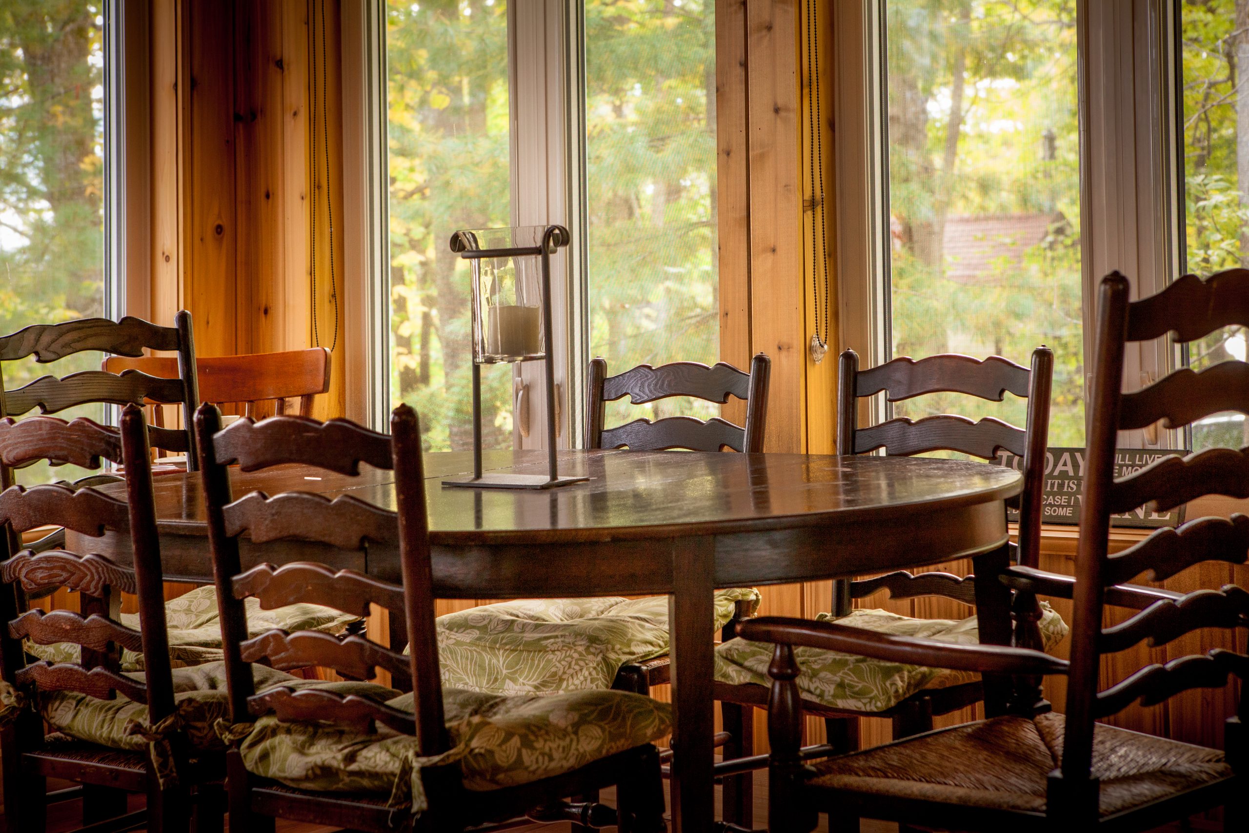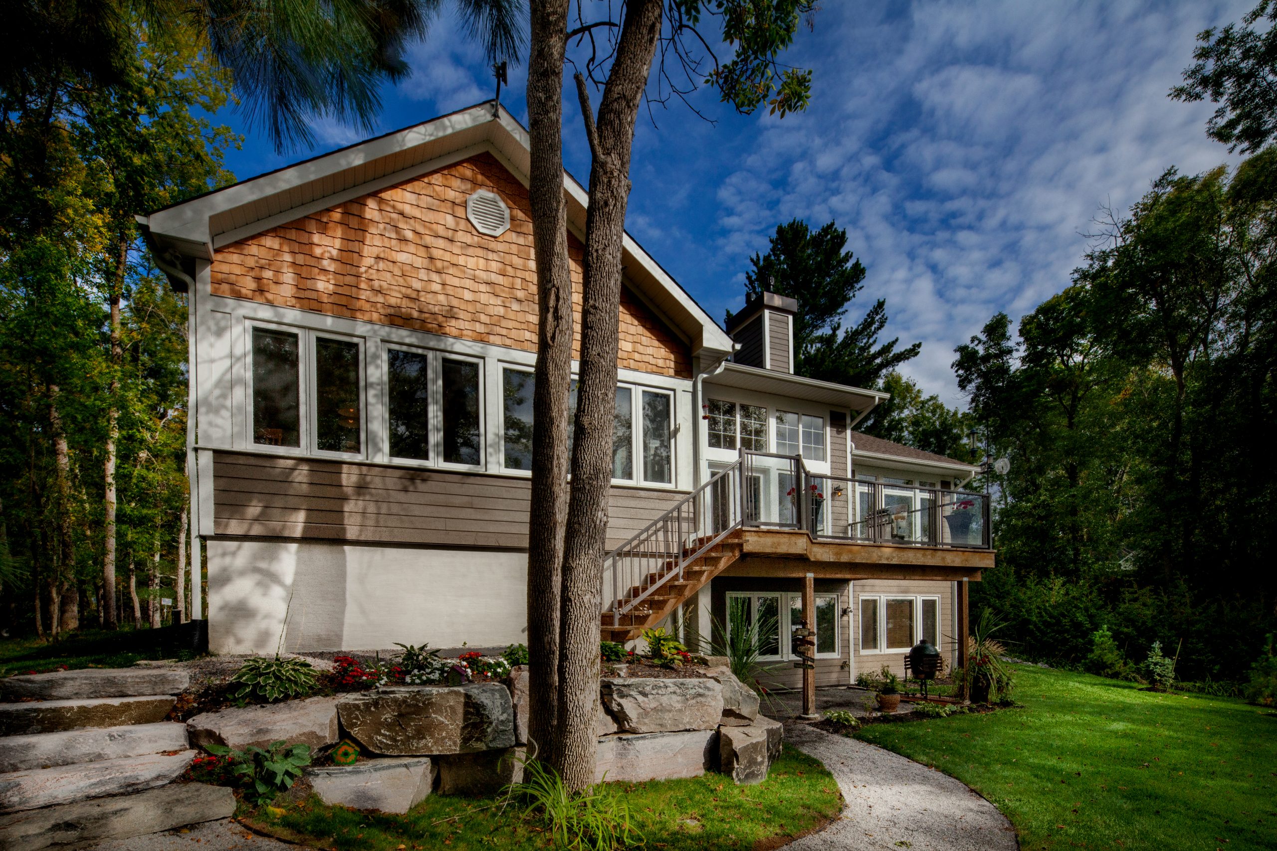 The home is deeply rooted in its setting. Mature trees remain, stone terraces and flower beds contour into the site, and the gently curving driveway offers graceful arrival. Outdoor living is emphasized by the glazed and covered porches, extending the footprint of the house into the landscape.